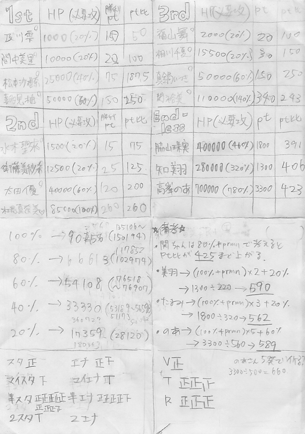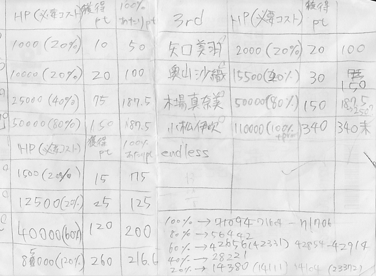 ちなみに追加ステージの部分が書いていないのは途中で面倒になったため。途中から勧誘に夢中になっていちいち計算とかしてられなかった。