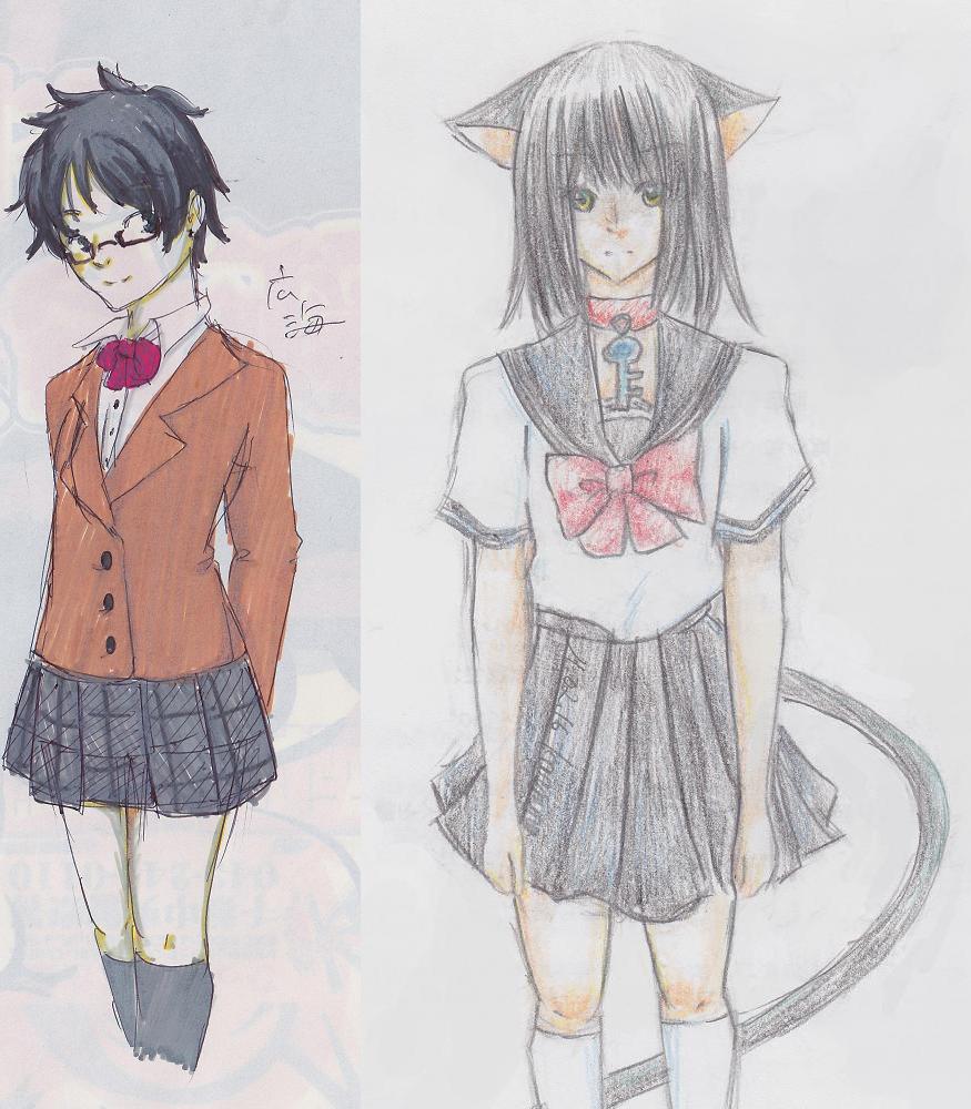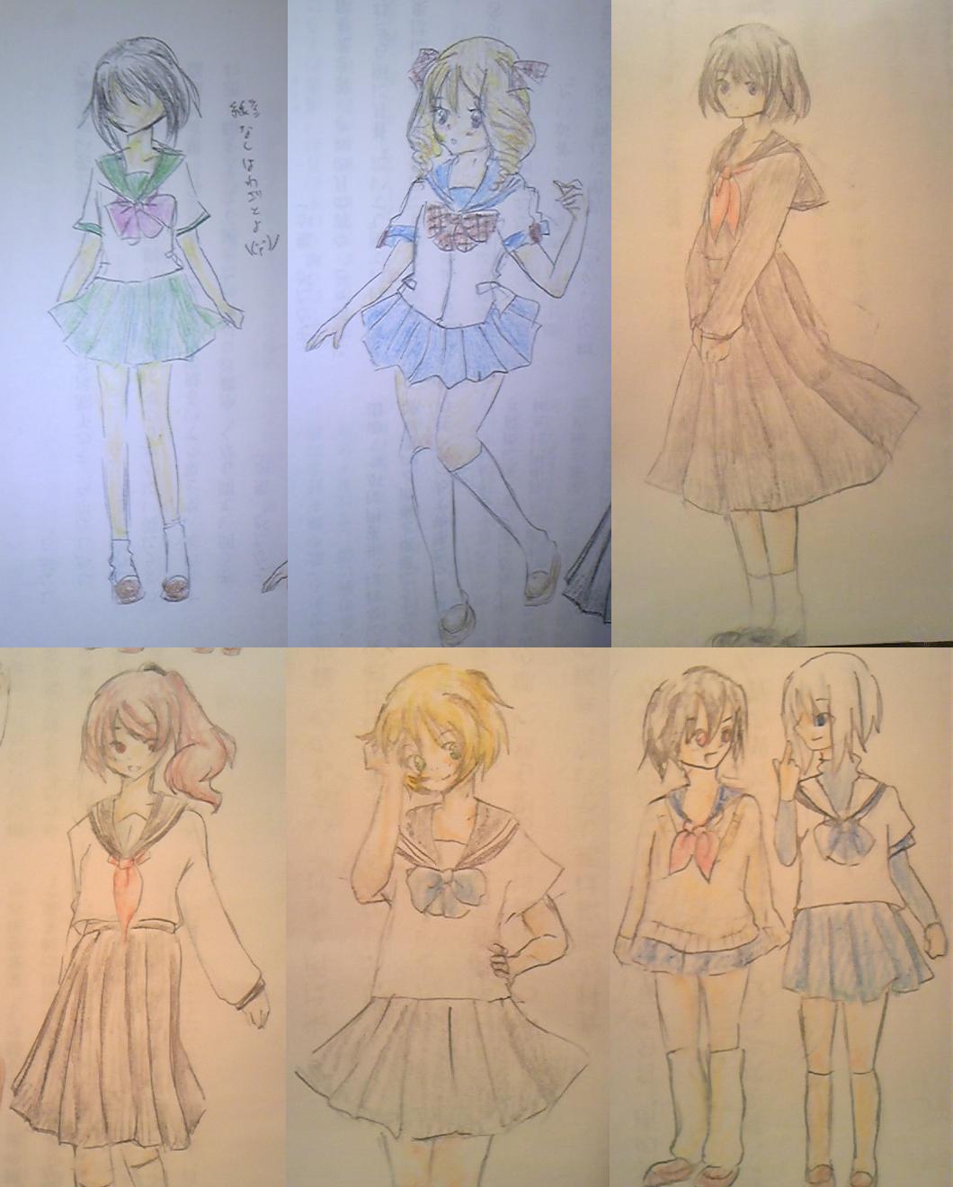 左上二つはリアリティとかどっか行きました。二つ目は昔見た少女漫画のセーラー服をイメージ。