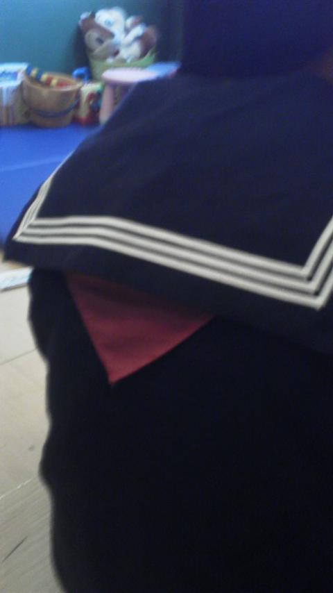 夏服のセーラー服なのですが、寒かったのでセーター着用。