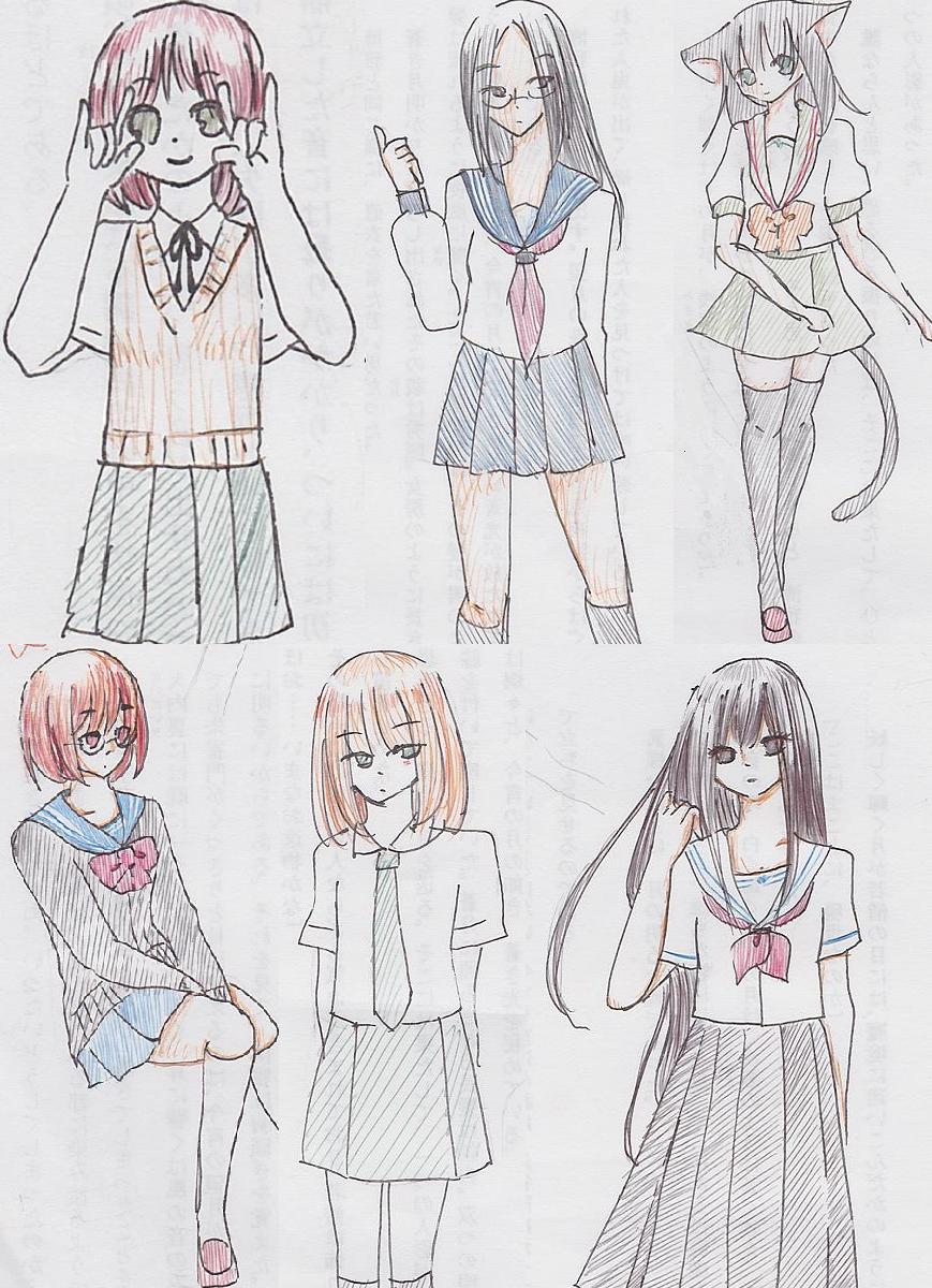 制服は最初、「描き易い服」としか思っておらず、まぁ、細かいことは気にせずに描いていました。