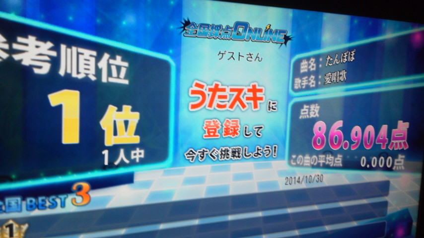 今回は採点機能付きだったので曲数少なめ。全国1位を2回とったよ!