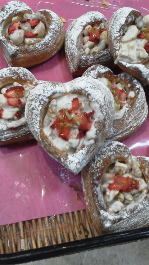 この時期だと、生鮮食品と惣菜売場をのぞいてはバレンタイン一色ですね。せんべい屋も、ハート型の、顔ほどあるでっかいせんべいを売っていました。えびせんべいのようなものを試食しましたが、まあ味は普通でした。