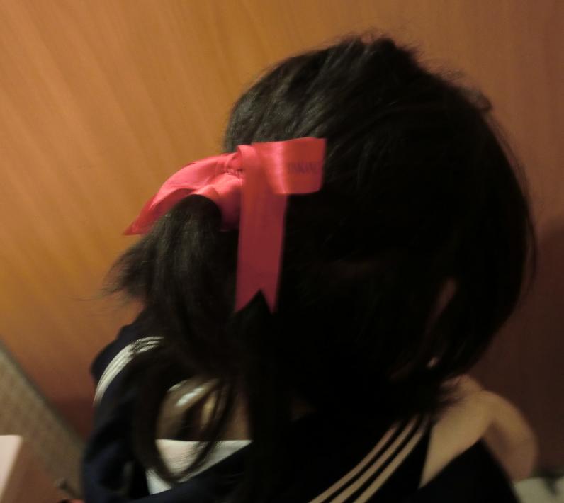 ちなみにリボンは持参物。ハロウィン用に色々リボンとか装飾具持ってきてたのを使用。
