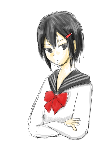 なんだろうね、まず構図が思いつかない。バストアップだけだと色気がないしな……