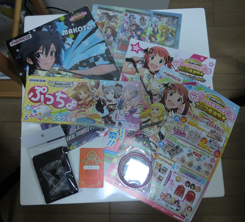 左下の黒いのはidolm@sterパスケースです。革。3000円。山盛りの小銭を出して買いました。買わなかったら公開するような気がしたのでつい買ってしまいました。おかげで財布が軽いです。