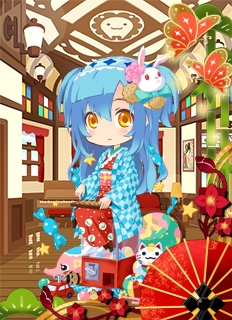 モコちゃんは髪を上げて、れぅちゃんは髪を下ろしてます。モコは着物でアップとかするけどれぅのこの髪は貴重だな。ロゼは案外青を着こなしてくれる。
