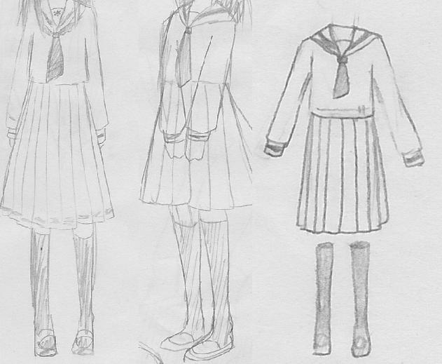 左上二つはリアリティとかどっか行きました。二つ目は昔見た少女漫画のセーラー服をイメージ。