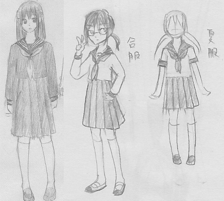 制服は最初、「描き易い服」としか思っておらず、まぁ、細かいことは気にせずに描いていました。